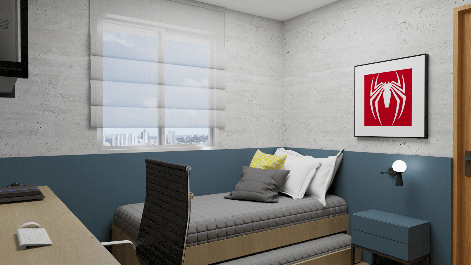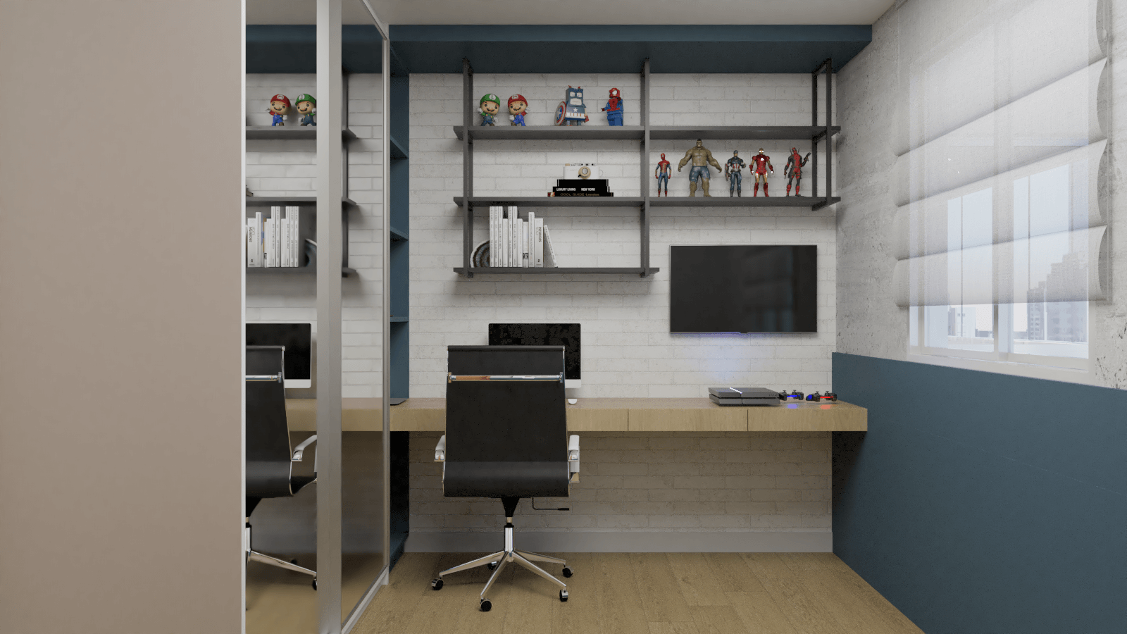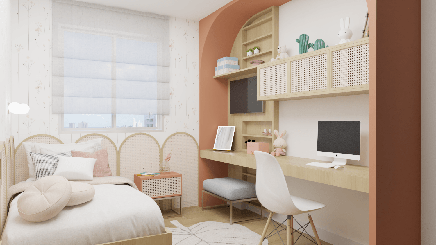 Em nossa proposta de design, integramos de forma harmoniosa a varanda, sala e cozinha, criando um espaço fluido e convidativo. A cuidadosa combinação de elementos e materiais proporciona uma atmosfera acolhedora e expansiva simultaneamente. A madeira desempenhou um papel essencial, adicionando aconchego e naturalidade aos detalhes dos móveis e painéis.