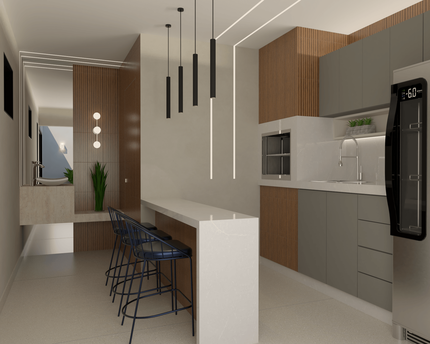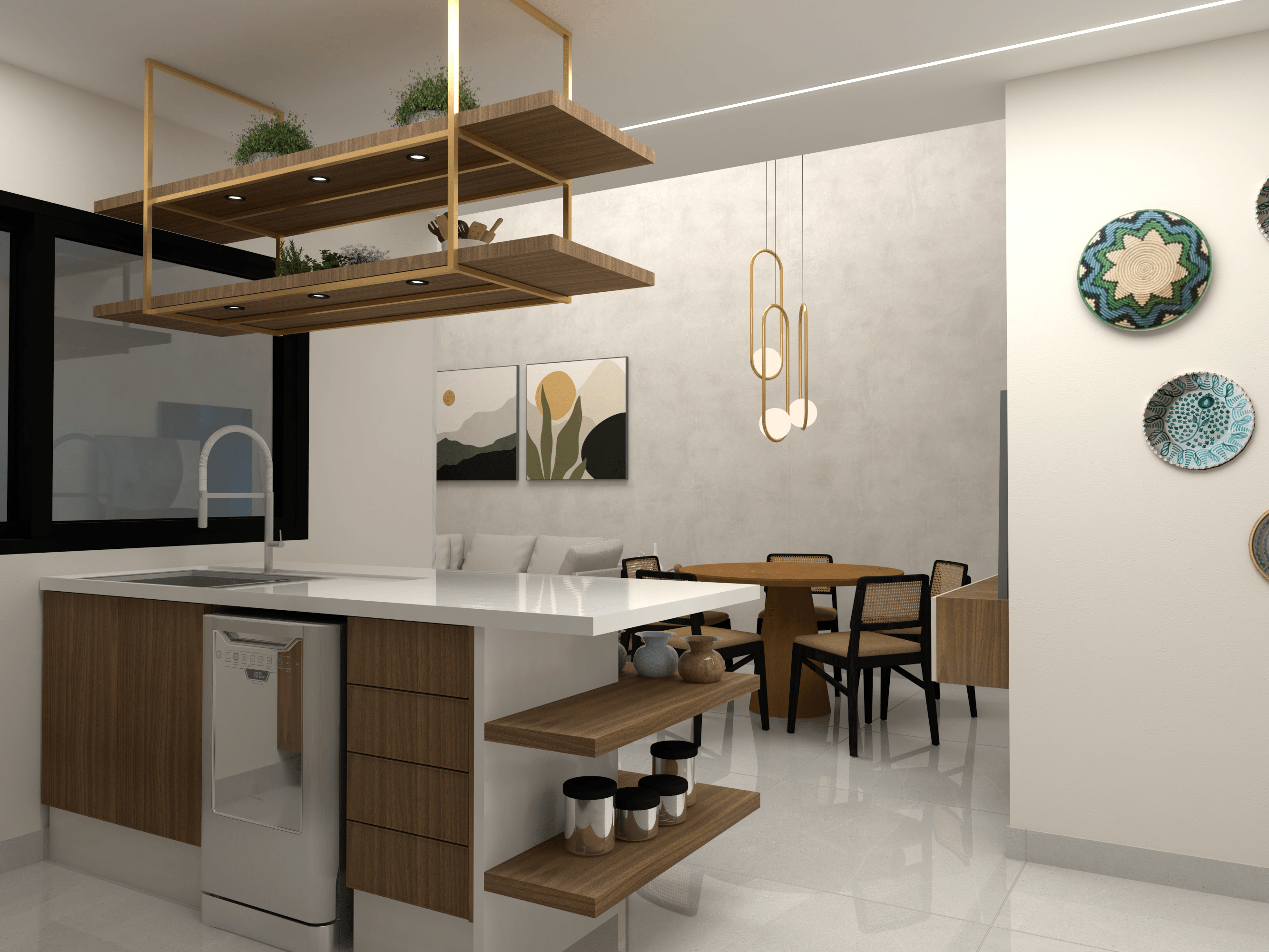 Nosso projeto de interior para esta residência é uma fusão perfeita entre o moderno e o clássico. Cada espaço foi cuidadosamente concebido para integrar elementos contemporâneos e tradicionais, criando uma atmosfera única e convidativa. Na área externa, dedicamos especial atenção para desenvolver um ambiente acolhedor e repleto de personalidade, proporcionando um refúgio encantador para momentos de relaxamento.